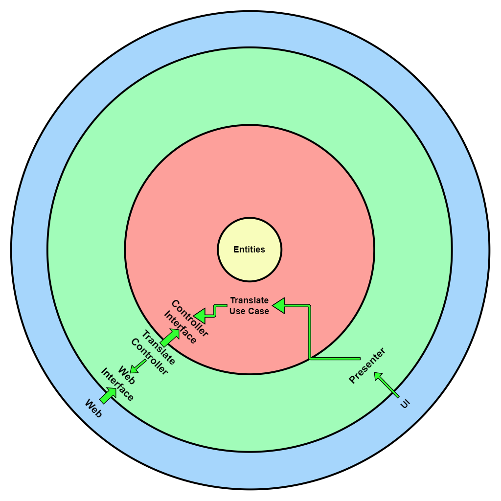 UI requests data from Presenter which requests data from Use Case which should request data from Controller which should request data from Web.