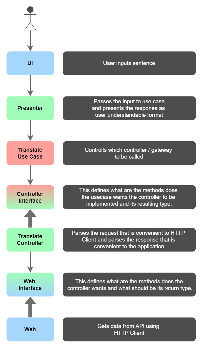 How can we architect an app that translates the sentence given by the user using a translation API?
